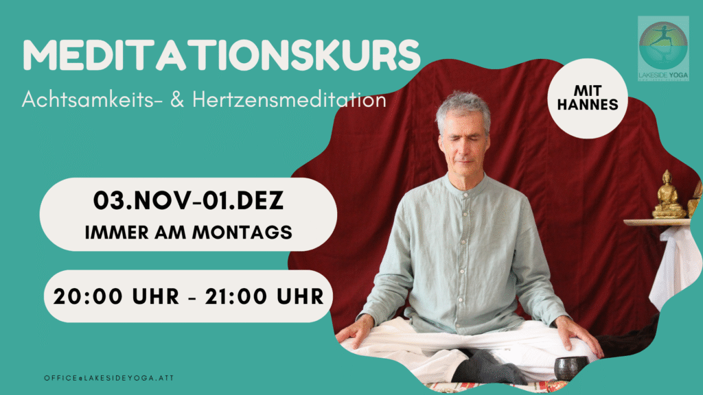 MEDITATIONKURS Achtsamkeits- und Herzensmeditation 03.11-01.12 2025 (5x in 5 Wochen) Immer am Montags um 19:00 Uhr mit Hannes Huber AnfängerInnen und Erfahrene willkommen Eine praktische Einführung in Achtsamkeitsmeditation, lebensnah und relevant vermittelt. Gewahrsein…